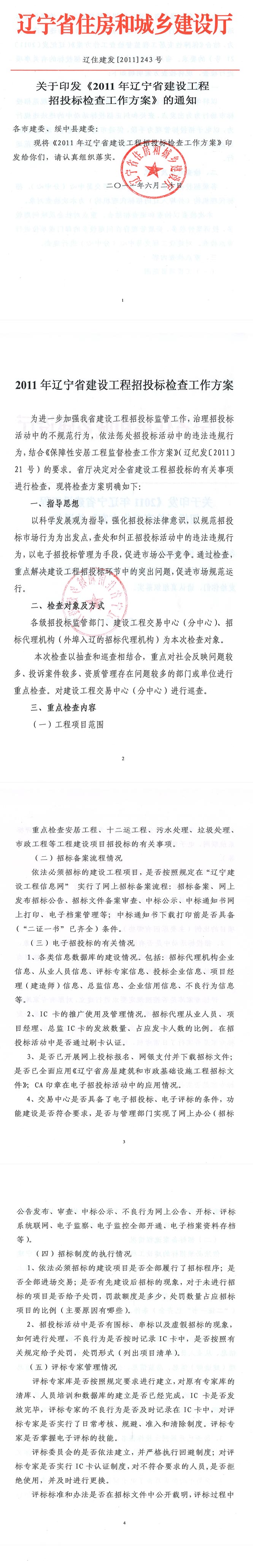 【概要描述】關(guān)于印發(fā)《2011年遼寧省建設(shè)工程招投標(biāo)檢查工作方案》的通知